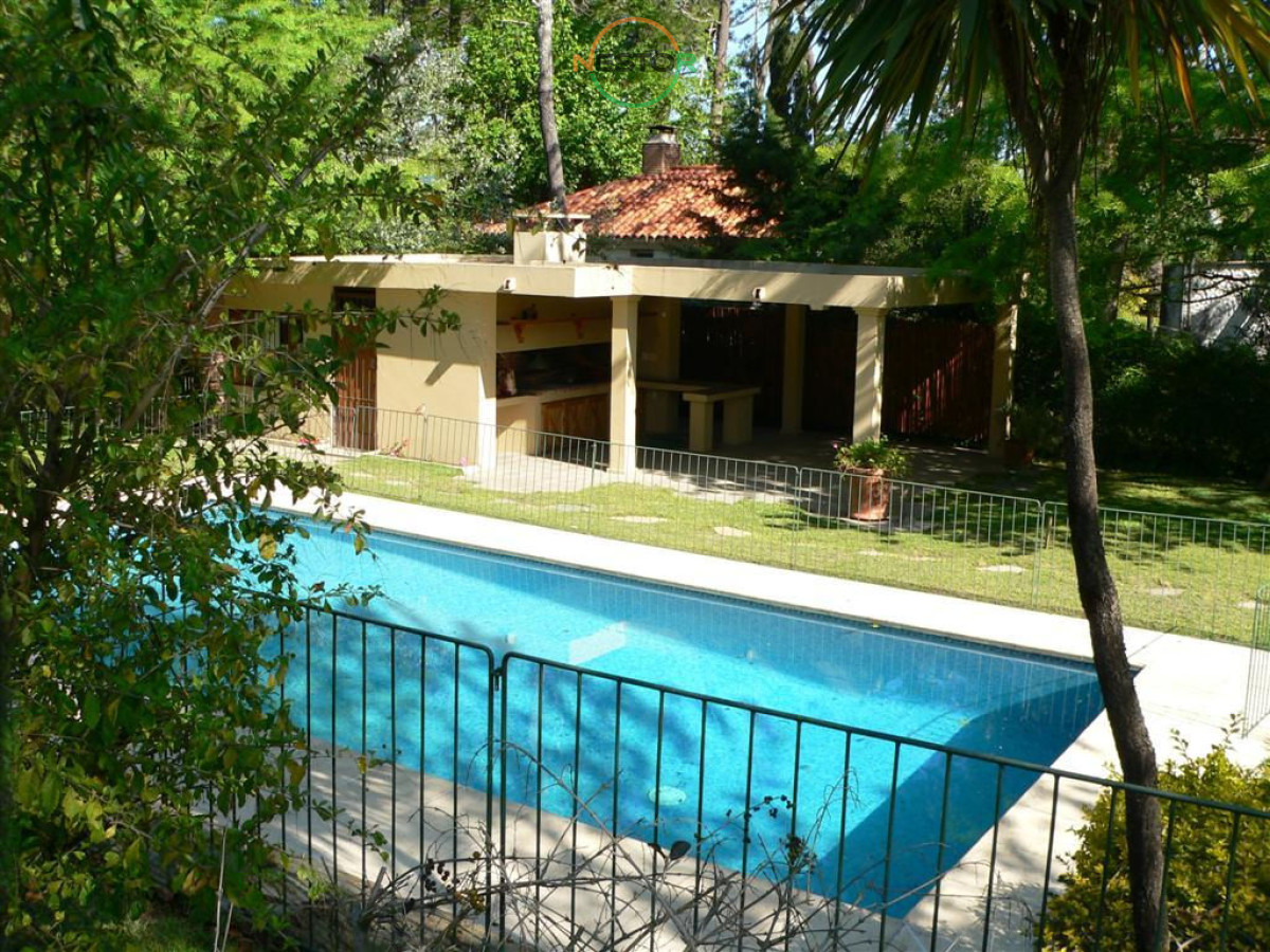 Living, comedor, cocina definida, 3 dormitorios, 3 baños (1 en suite), toilette, parrillero techado, piscina climatizada, amplio jardin