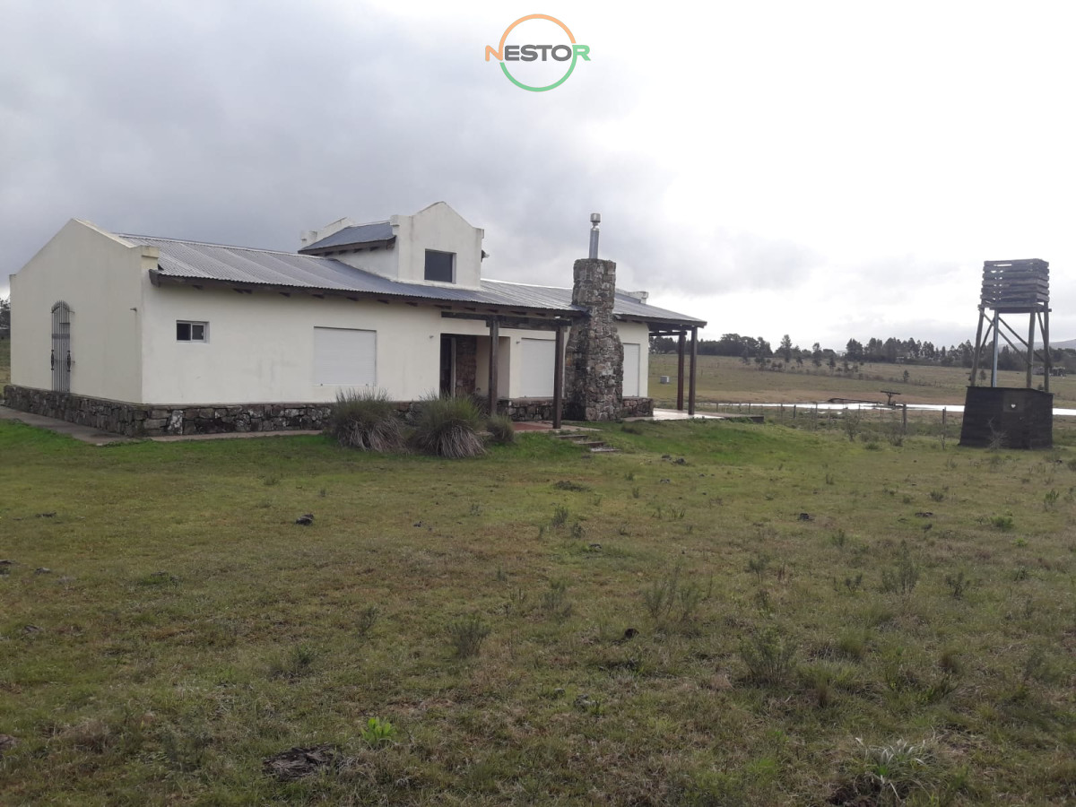 Cuenta con casa de 2 dormitorios, 2 baños, living, comedor, cocina, parrillero, lago artificial, monte de eucalipto y pino.